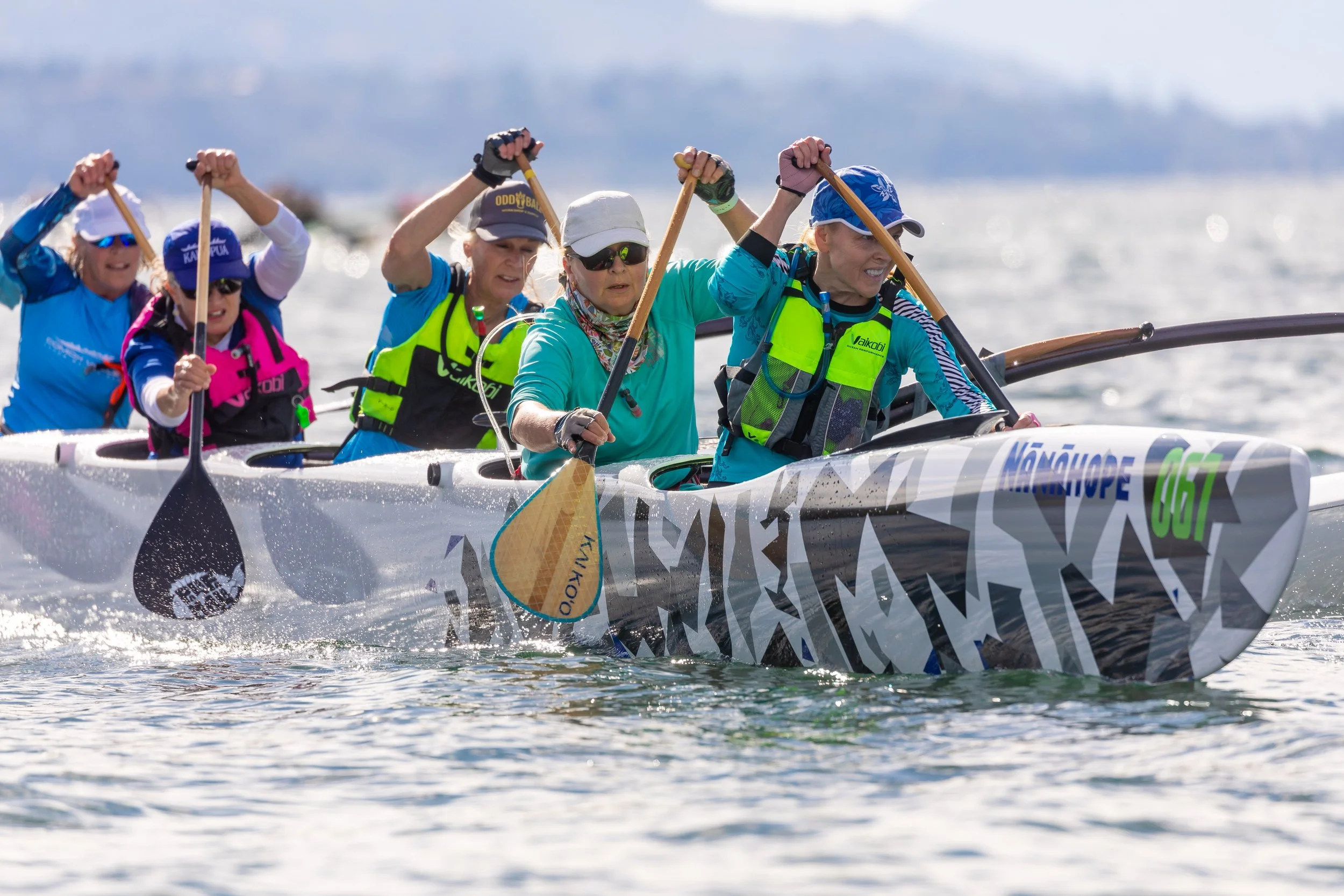 The OC6 Novice and Junior Course will be approximately 6 kms. Canoes will head out past Goose Spit to an ama side turn at the “Green Can” and return to finish at the Harbour.